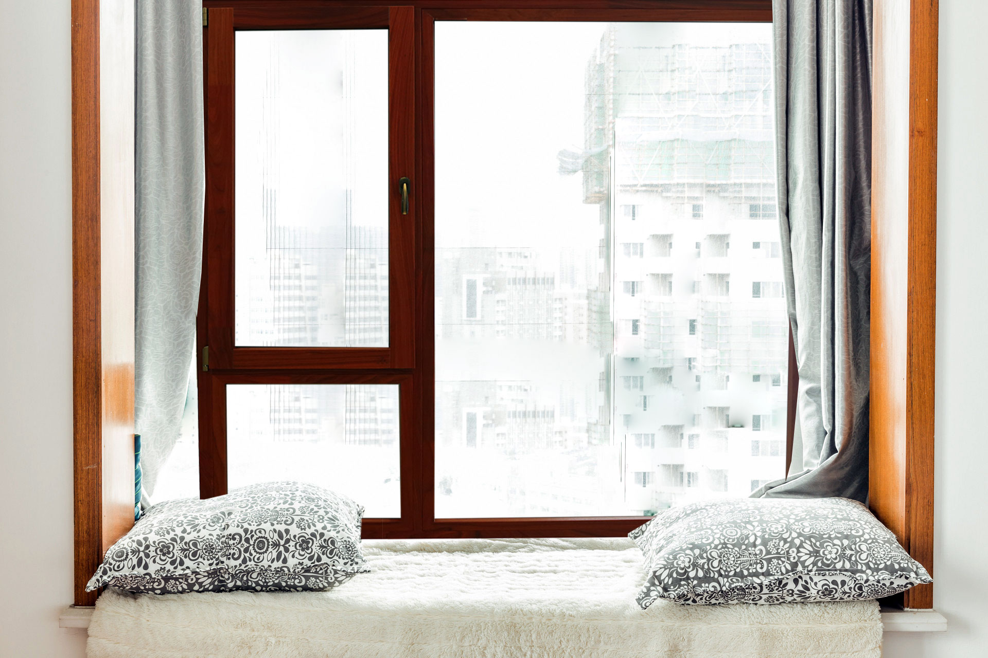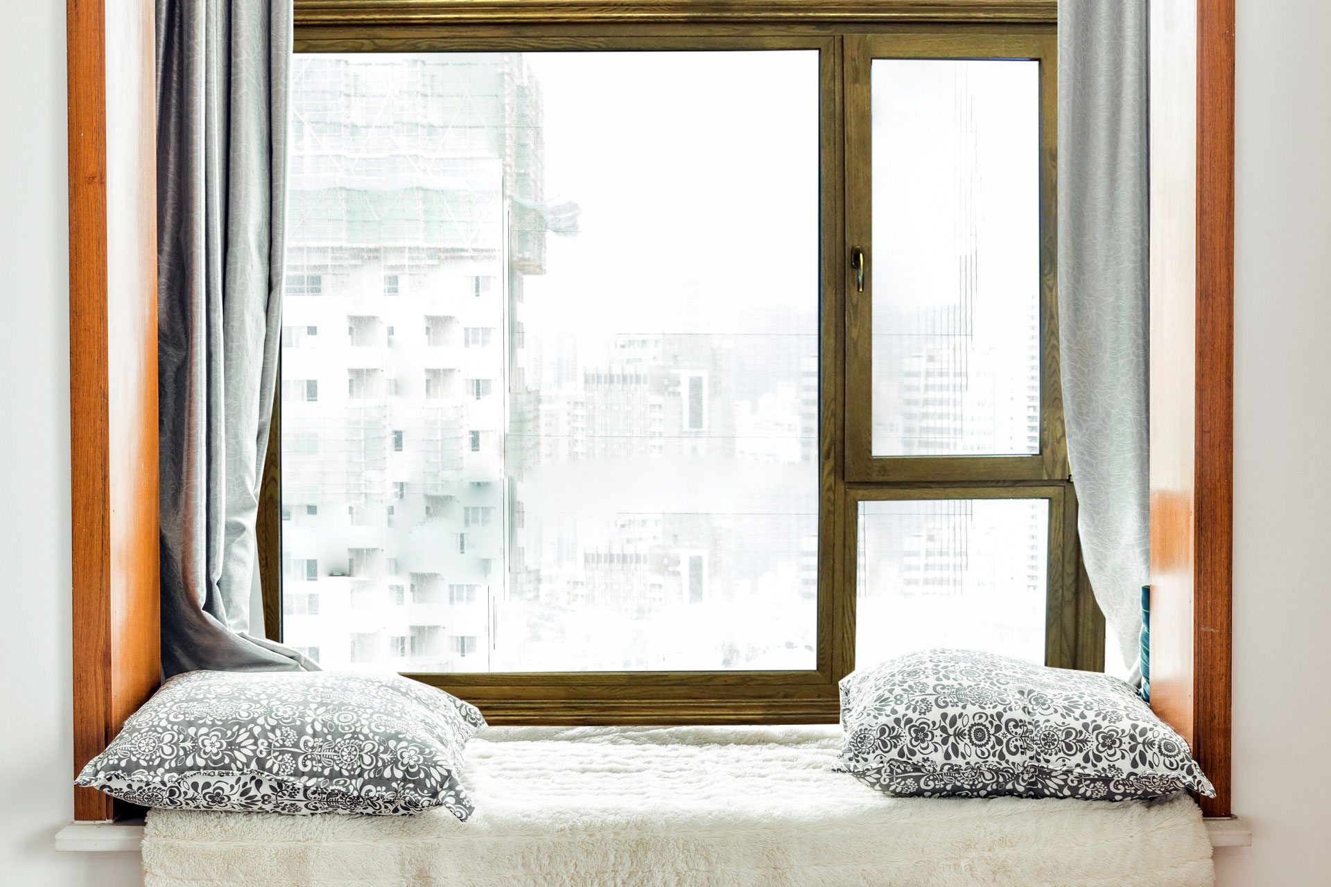 88鋁包木(紅橡木)三層鋼化玻璃樣窗實拍