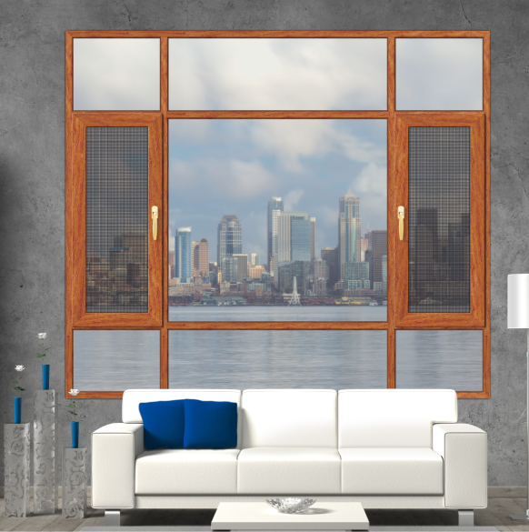 100系列鋁木復(fù)合窗紗一體,外置紗窗,紗窗暗把手1
